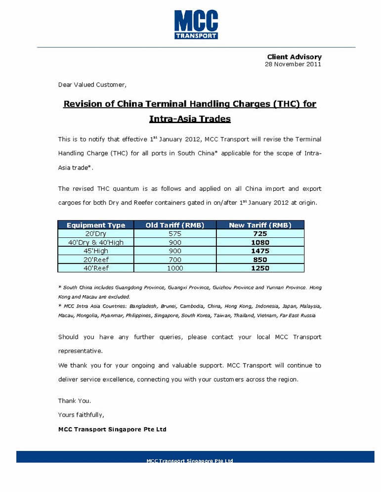 MCC東(dōng)南(nán)亞航線1月(y÷©Ω☆uè)1日(rì)起THC上(shàng)調通(tōng)知(zhī)!