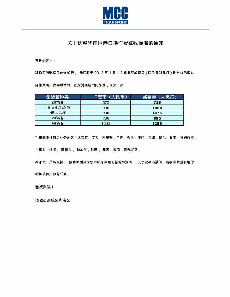 MCC東(dōng)南(nán)亞航線1月(y÷©Ω☆uè)1日(rì)起THC上(shàng)調通(tōng)知(zhī)!